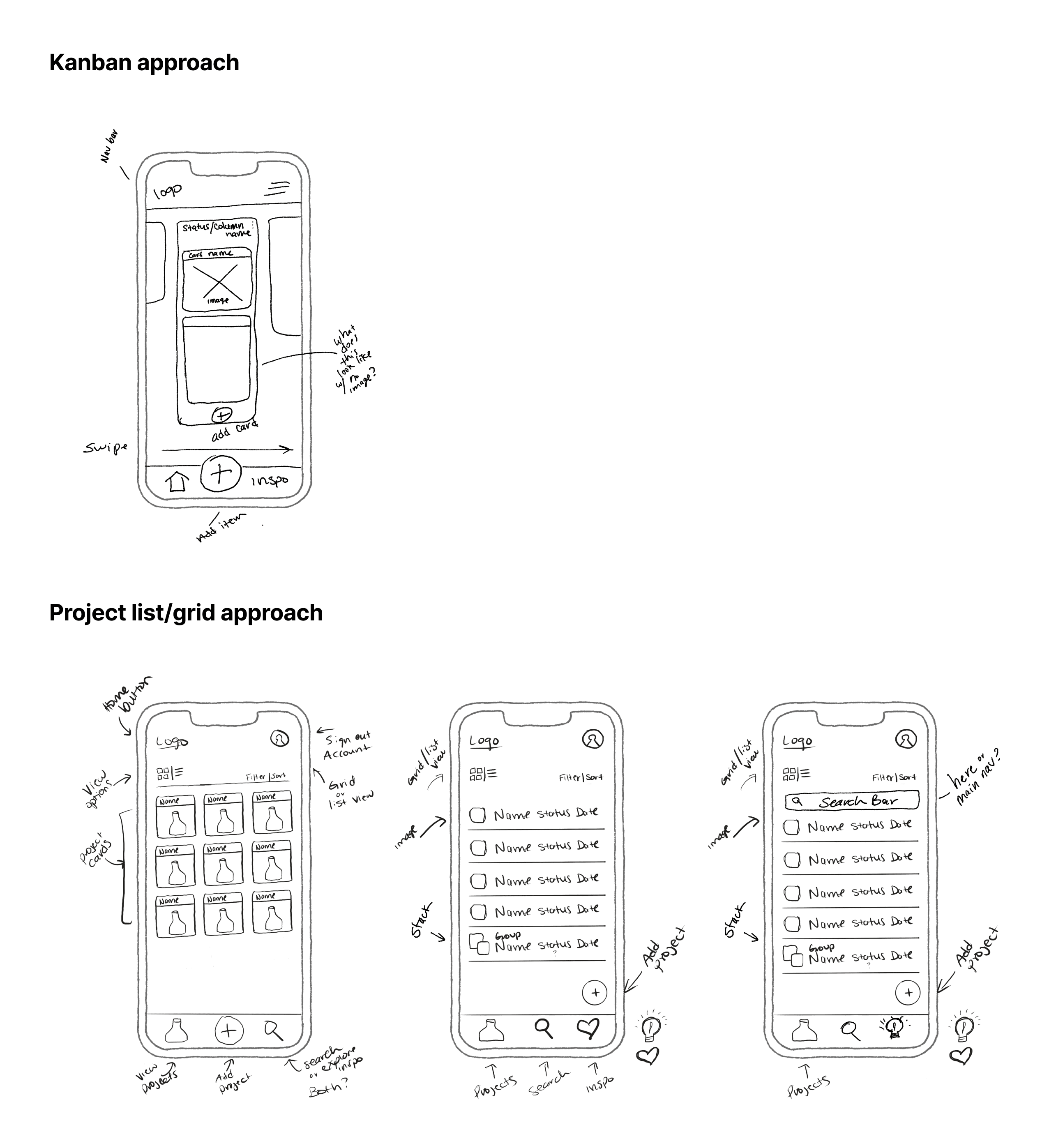 The Project List view offered more flexibility in the UI to give the user viewing options and put more focus on viewing multiple projects at once. The kanban approach didn't make efficient use of the viewport on mobile and felt too similar to existing tools like Trello.
