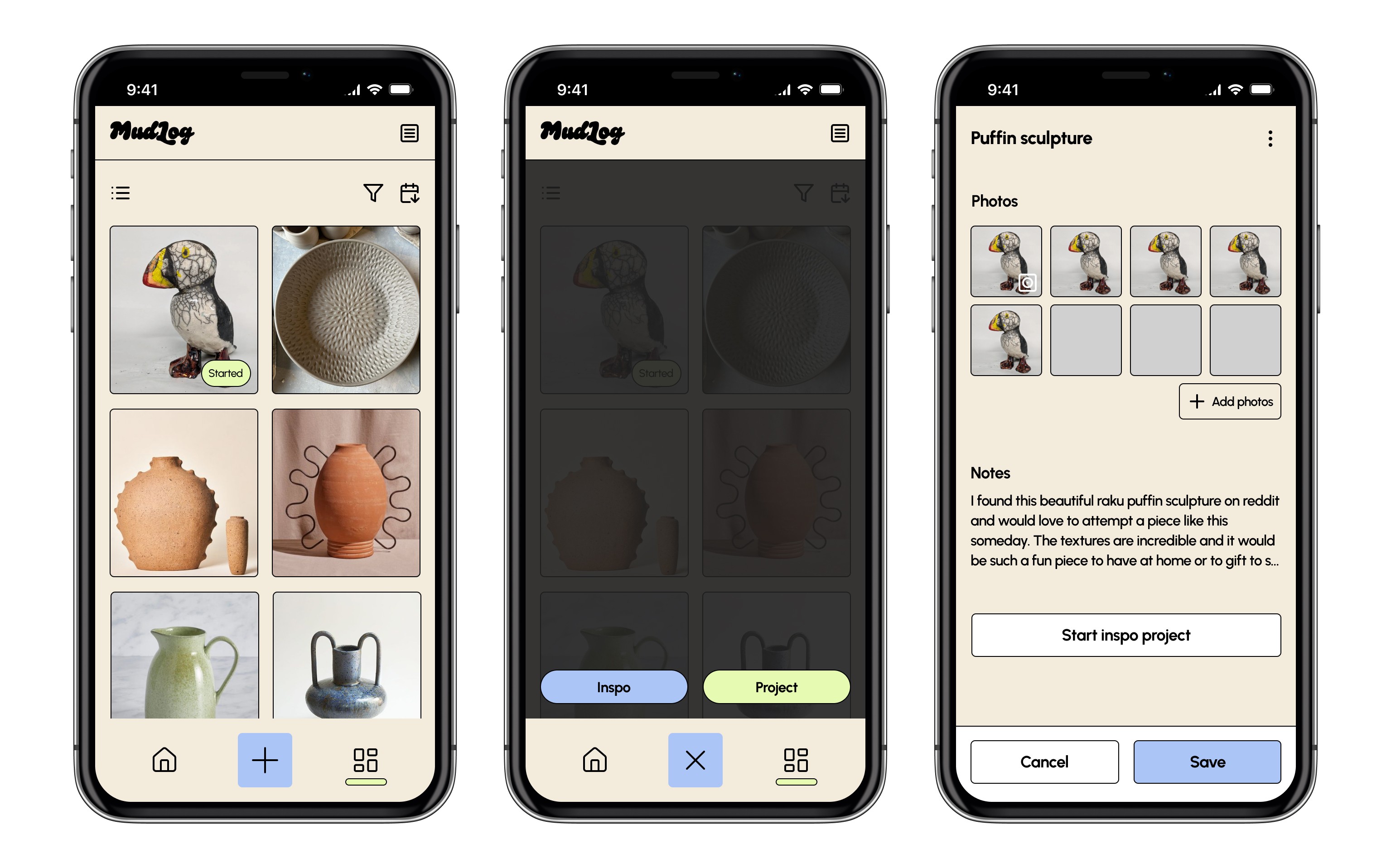 Other features I would consider adding in future iterations based on research include: Search, Tags for filtering projects or inspo quickly, and Social sharing (projects and glaze combination inspo).